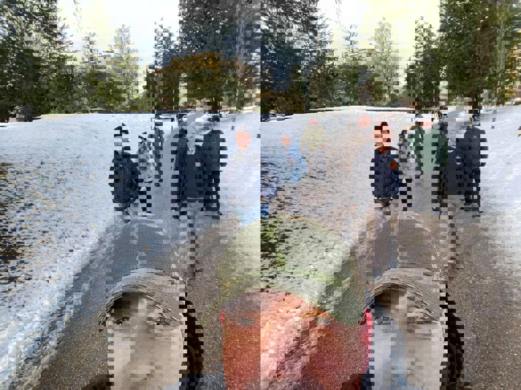 Syv deltagere på ukens tur. Litt sur vind men mye varmere enn forrige uke. Vi gikk den vanlige ruten med en stopp i Fjellveien før turen gikk ned til sentrum og Møhlenpris. Vi var litt usikre på om Brenneriet var åpent men det var de så da ble det kaffe med tilbehør i dag også.