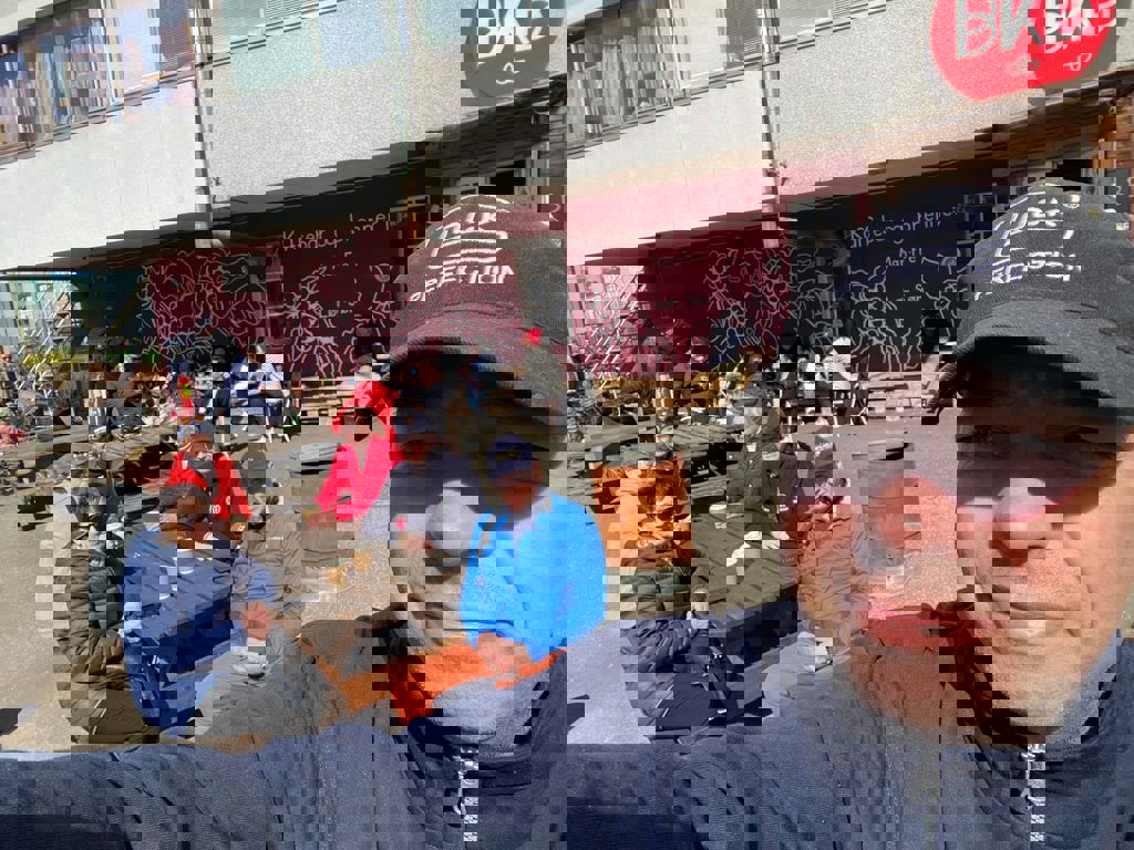 Fin tur i dag med flott vær og god stemning blant de 7 deltagerne. Det ble både lang og kort løype i dag og vi møttes som vanlig på kaffebrenneriet og tok en kaffe med litt å bite denne gangen.